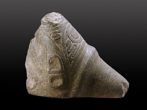 Taíno Large Carved Stone Fragment of a Deity Head from a Pestle