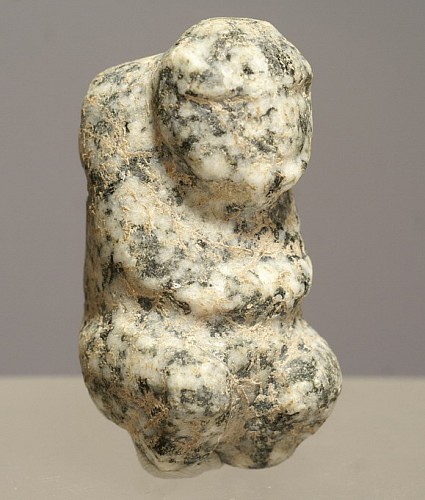 Taíno Carved Light Gray Stone Miniature Crouching Figure
