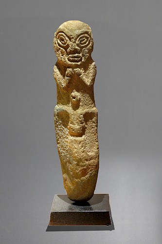Taíno Striated Stone Pestle a Depicting a Stylized Figure